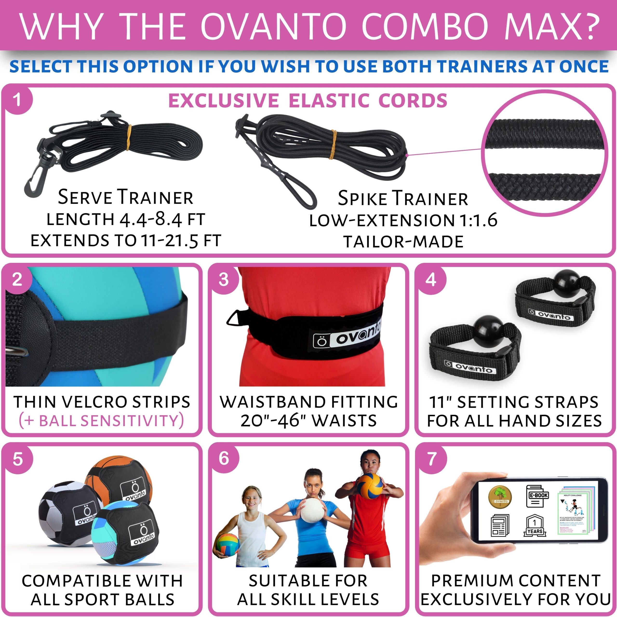 - 2 Tailor-made adjustable Elastic cords specific for Spike Training